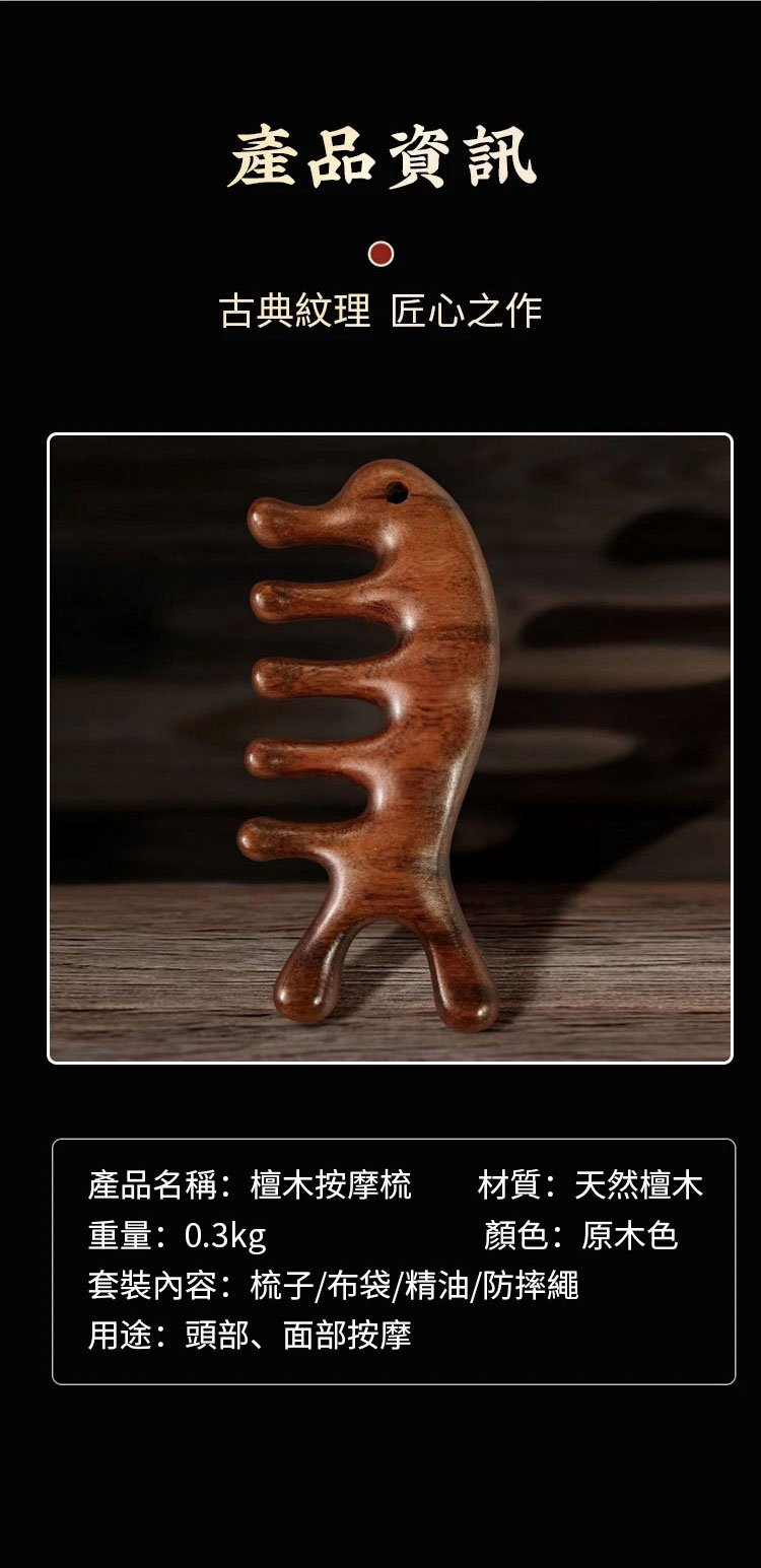 4分鐘前天然檀木美容經絡按摩梳 ◀頭臉按摩◀疏通經絡◀刮痧排毒 按摩穴位促進排毒,面部提拉緊緻 - 【緩解頭痛,按出健康】5入組HK$346