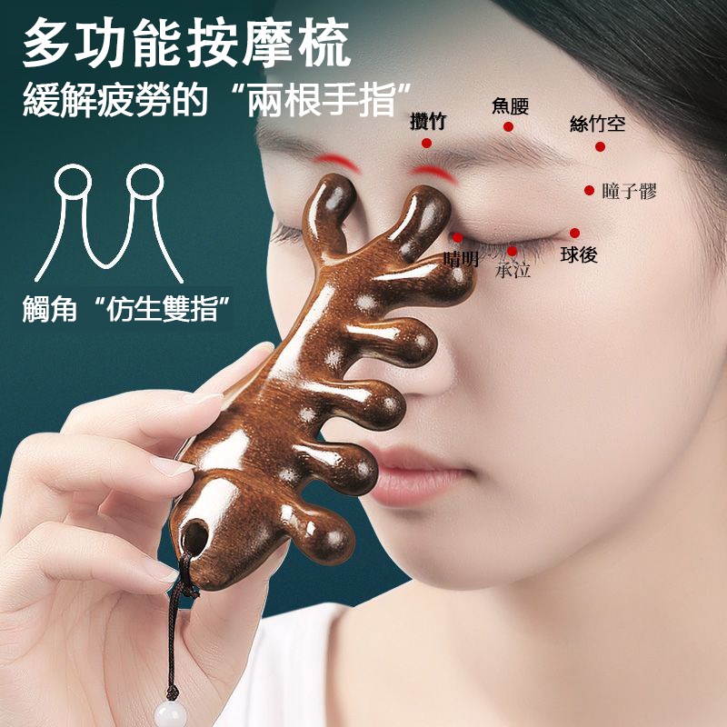5分鐘前天然檀木美容經絡按摩梳 ◀頭臉按摩◀疏通經絡◀刮痧排毒 按摩穴位促進排毒,面部提拉緊緻 - 【緩解頭痛,按出健康】5入組HK$346